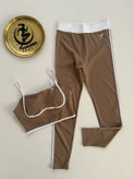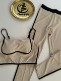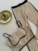 ست نیمتنه و لگ جیمشارک با جنس فلامنت اصل و نیمتنه کاپدار با کاپ متحرک. نیمتنه چهارلایه و دارای کش زیر سینه بند قابل تنظیم. دوخت فلت و اورجینال. لگ فاق بلند با فاق مرغکدار و قد لگ 90.